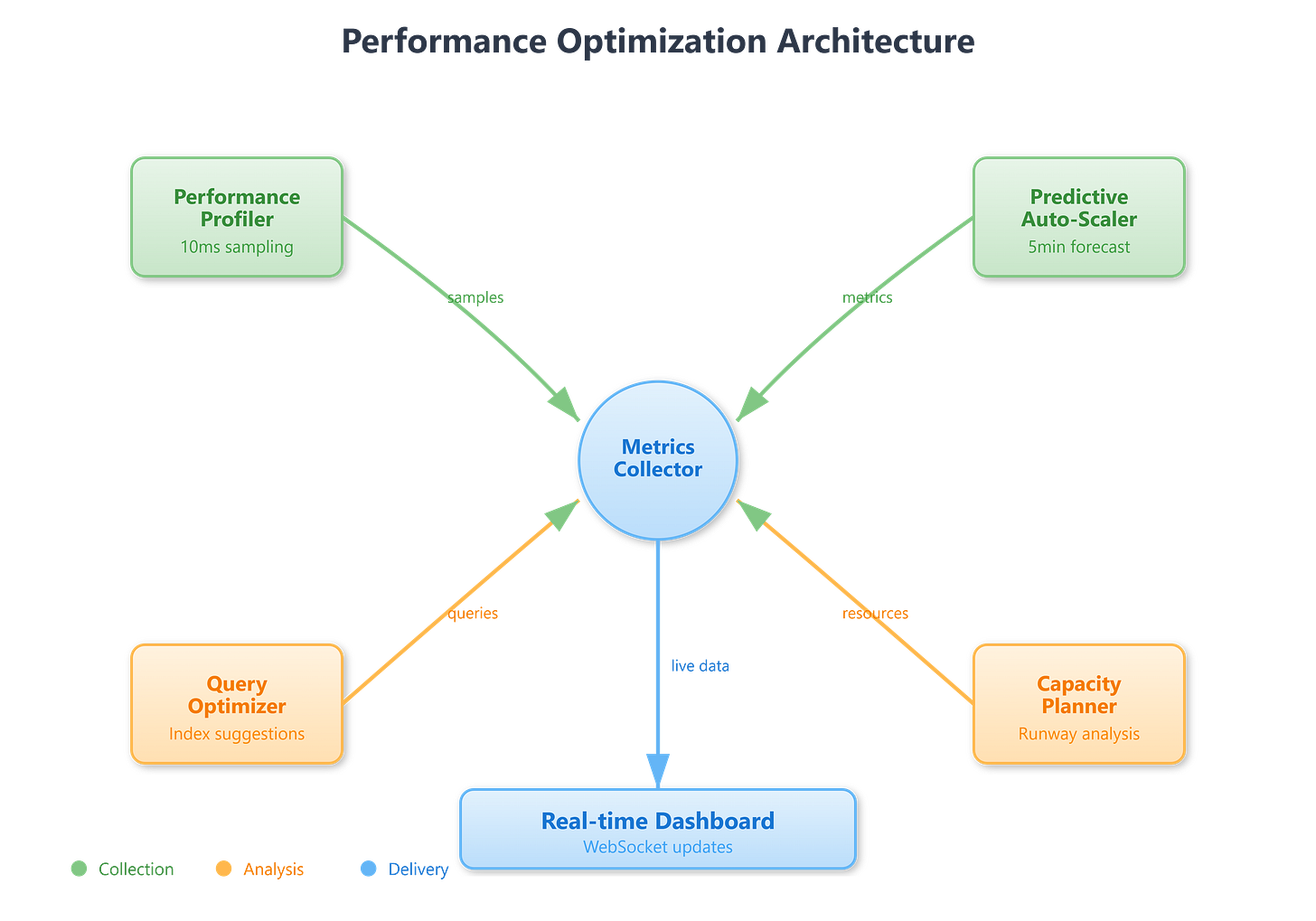 Today we’re building a complete performance optimization system that goes beyond basic monitoring. We’ll create an intelligent performance profiler that analyzes application behavior, a predictive auto-scaler that anticipates load changes before they happen, and a capacity planning engine that models growth scenarios. Think of it as giving your infrastructure a brain that learns from patterns and makes smart decisions about resources.